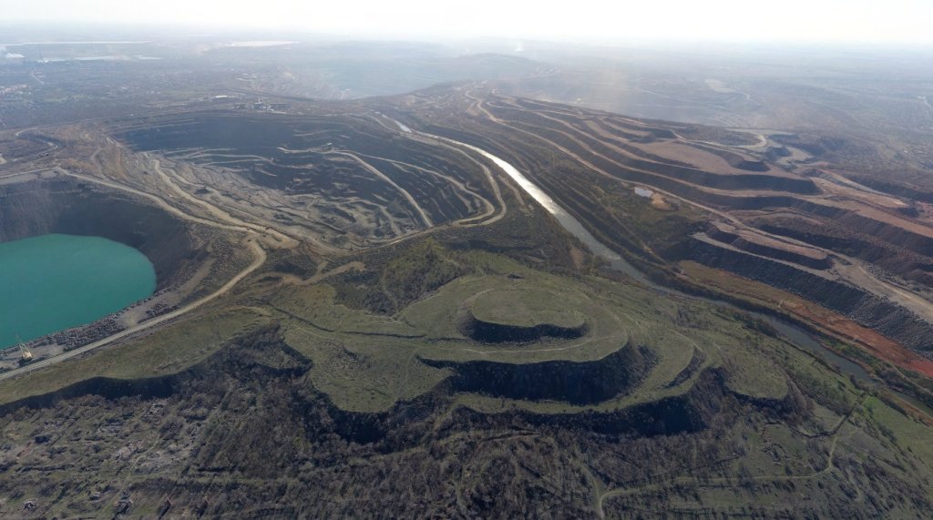 Los embudos únicos, que se forman como resultado del colapso de los techos de los vacíos de las minas, se llaman las zonas del derrumbe. En estos lugares se forman los llamados paisajes marcianos de Kryvbas.